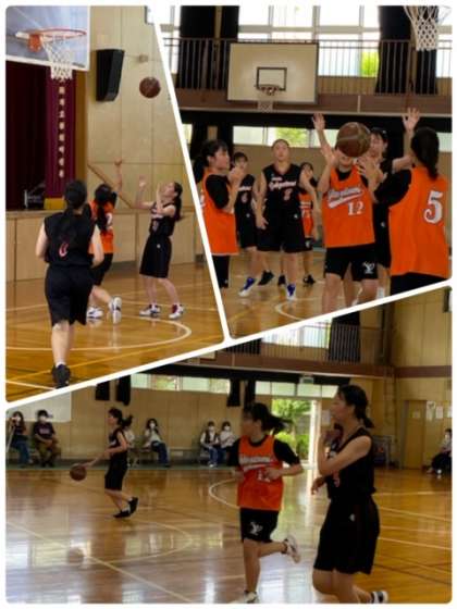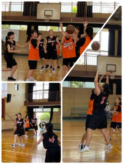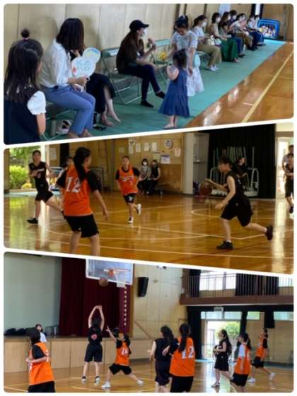 コートの中で声を出して、応援の掛け声をかけて、みんなでバスケットボールを楽しんでいます。