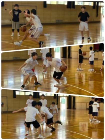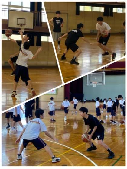 体育館では、男子バスケットボール部が練習しています。3年生と一緒にプレーできる日が残り少なくなってきました。オフェンス、ディフェンスの強さからシュート力をつけるように熱心に取り組んでいます。