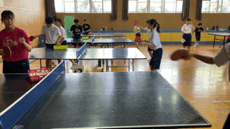 多球練習といって、一方が球出しをして鋭い球を返球しています。時間を区切って集中するように、がんばっています。
