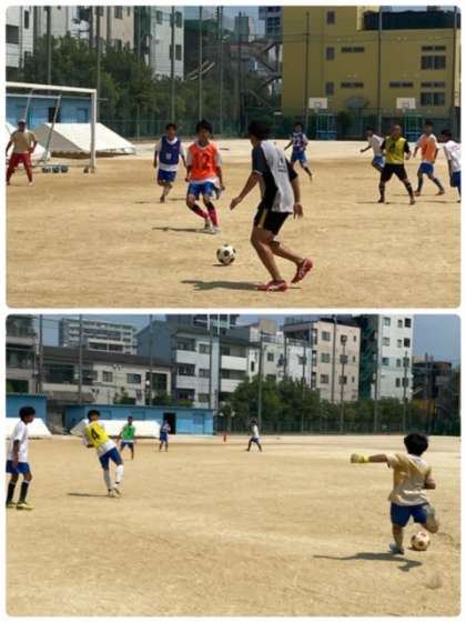 陽ざしの差し込み方が午前と午後と違うため、いつもと違う感じがしているようです。熱中症に注意して、こまめな給水と休憩を取りながら練習しています。