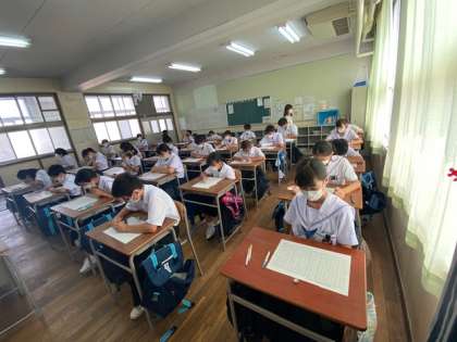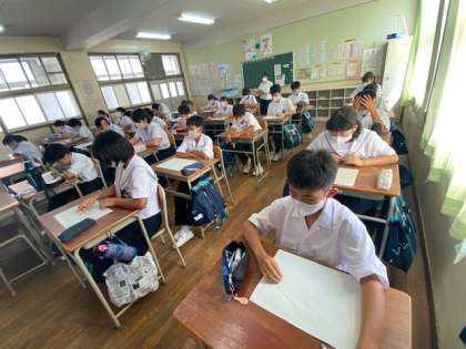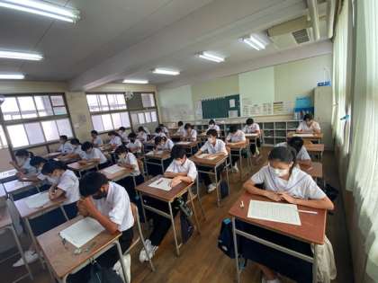 1年生は、2学期最初の授業として、夏休みの課題の英単語テストを行っています。