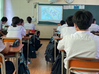 2年生の特別活動では、体育大会学級旗のデザイン決定を行っています。夏休みの課題として、クラスカラーやイメージの言葉をかいてきました。さまざまな力作そろいで、どれが選ばれるのか楽しみです。