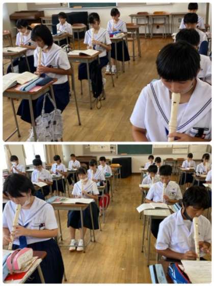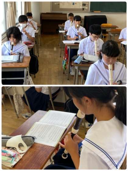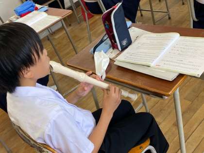 1年生の音楽の授業では、アルトリコーダーに取り組んでいます。