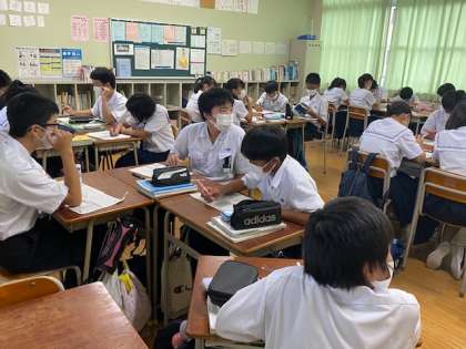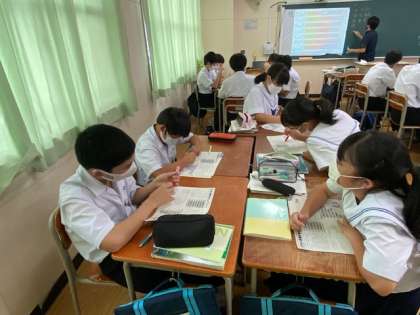 グループ学習は、学習課題に対して少しの時間、個人で考え、その後グループで話し合い、お互いの考えを比較して、最後にクラス全体で共有するものです。