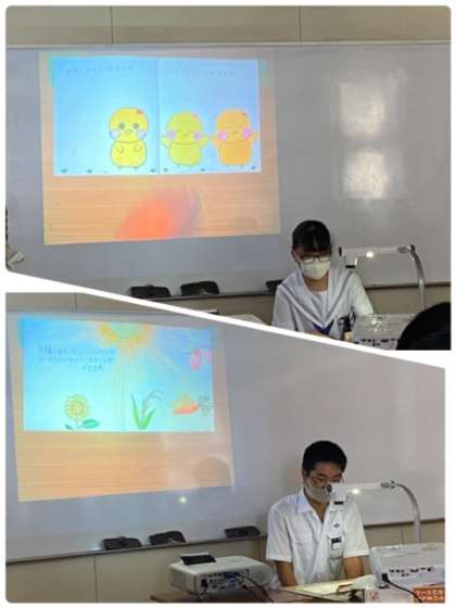 3年生の家庭科の授業では、夏休みの課題の「絵本」の発表会を行っています。