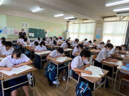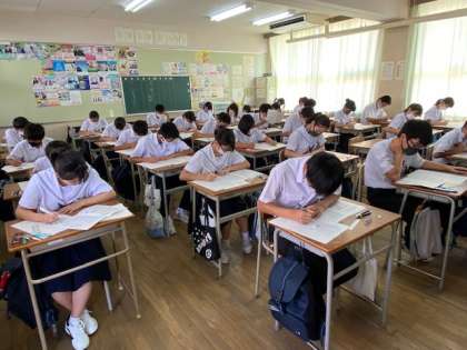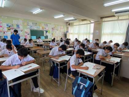 本日、3年生は第2回実力テストを行っています。1・2年生の学習内容を夏休みに計画通り復習することができたでしょうか?実力テストの範囲は、これまで学習したところすべてとなります。点数だけにこだわらす、できなかった問題を復習するようにしましょう。