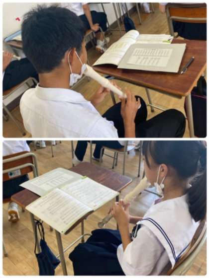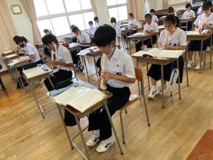 2年生の音楽の授業では、アルトリコーダーに取り組んでいます。
