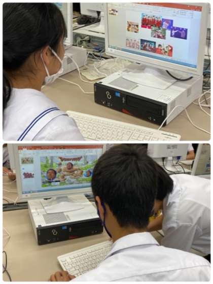 インターネットで検索した画像を、パワーポイントに貼りつけて編集しています。自分好みのものを探して、自由に貼りつけて、アニメーションを追加しています。