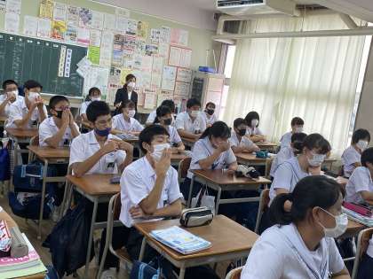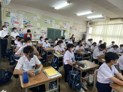 3年生の英語では、横堤小学校の習熟度担当の先生も参観されています。
