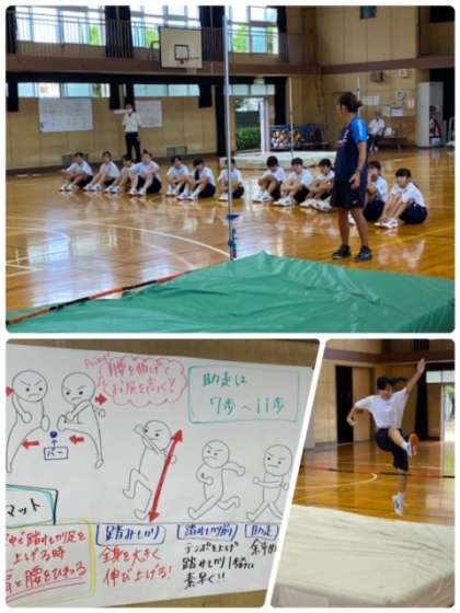 大阪市教育センターから教科担当指導主事の方に、参観していただきました。今回は、高跳びの最初の授業なので、競技についての説明をしっかり行っています。
