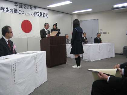 12月18日(木)午後3時30分より、城東税務署において、平成26年度 中学生の「税についての作文」表彰式が行われました。
