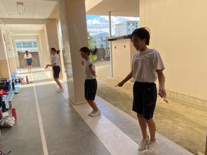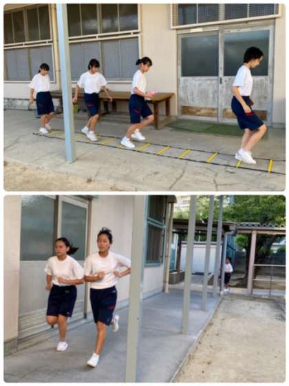 ランニング、ラダー、縄跳び、基礎パスの4チームに分かれて練習しています。どんなスポーツでも、基礎体力をつけたり、体幹を鍛えることはとても重要です。