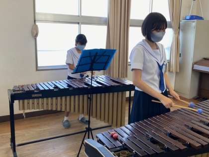 マリンバの心地よい音色が聞こえてきたので、音楽室を訪ねました。