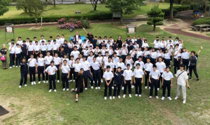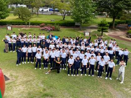 雨があがったので、見渡せる広場で学年全体写真を撮影しました。