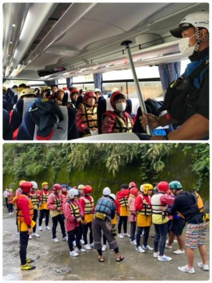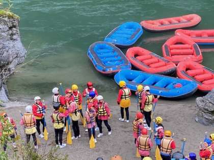 用意されているラフティングボートに、班ごとに乗っていきます。とても楽しみです!
