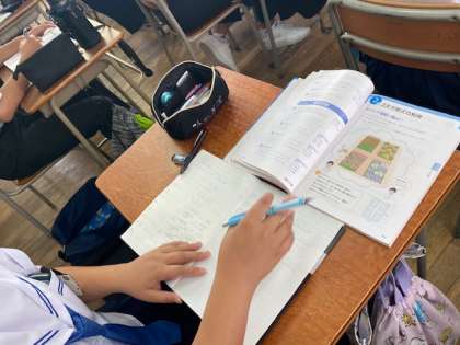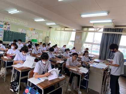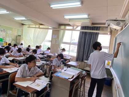 3年生の数学の授業です。修学旅行から帰ってきて、3連休があったので体力も十分回復したようです。しっかり問題に取り組んでいます。