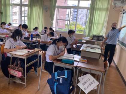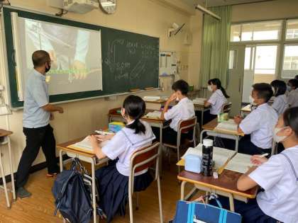 2年生の理科の授業では、実験の説明を動画も活用して行っています。
