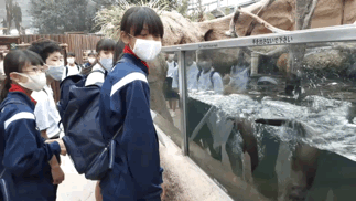 みんなでお弁当を食べています。バードエリアでは、手に乗せることができて、とてもうれしそうです。カワウソたちもとってもかわいいです。