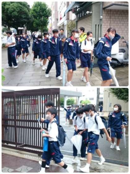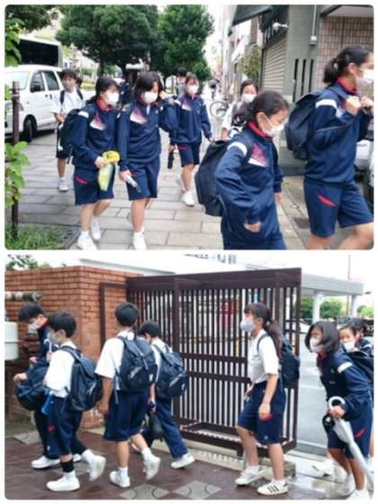 1年生が無事に学校に戻ってきました。出迎えの先生たちに「楽しかった」「おもしろかった」など感想を言ってくれました。