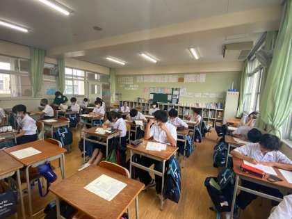 2年生の特別活動は、金曜に実施する英語検定にむけて準備しています。