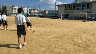 秋晴れのさわやかなグラウンドで、ランニング・ラジオ体操・筋トレをしてサッカーに取り組みます。今日は、フリーキックのテストです。ゴールに示されたポイントをねらってシュートをしています。
