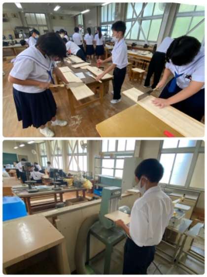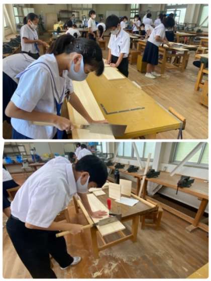 1年生の技術の授業では、本立てを製作しています。