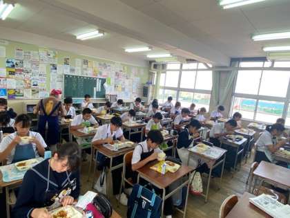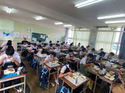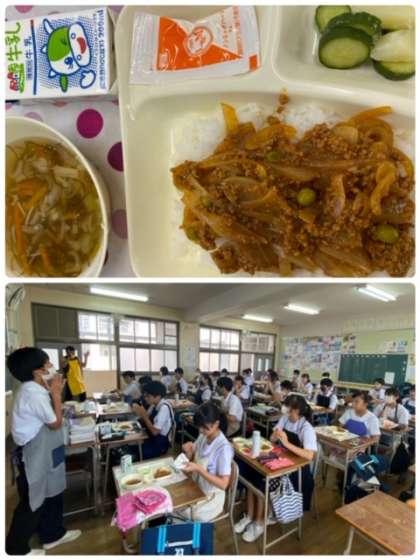 今日の給食メニューは、タコライス・もずくのスープ・じゃがいもときゅうりのサラダ・牛乳です。
