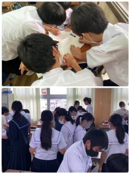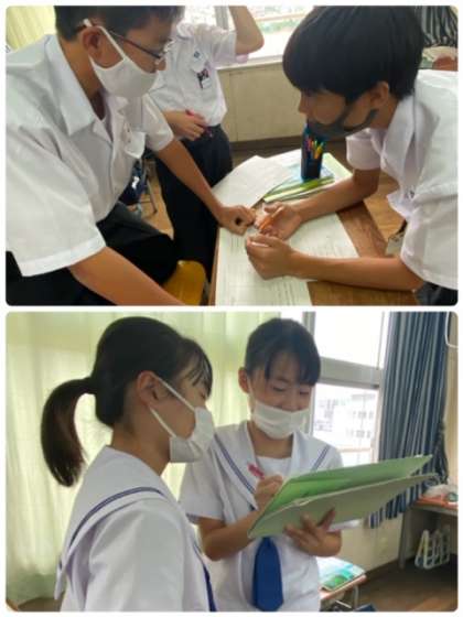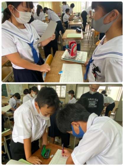 1年生の英語の授業では、互いに英語でインタビューする学習を行っています。