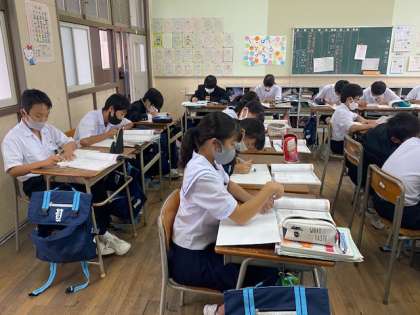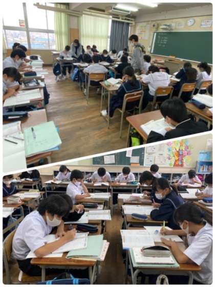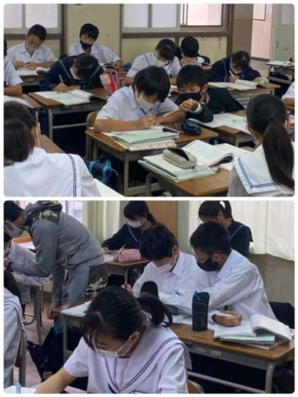 中間テスト前にさまざまな問題に取り組んでいます。自然と教え合いが生まれています。