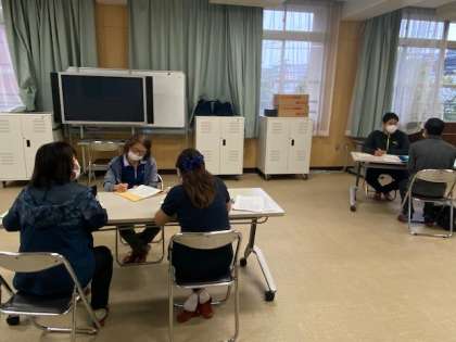 放課後に、横堤小学校の先生たちと連携会議の打ち合わせを行いました。