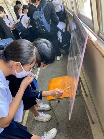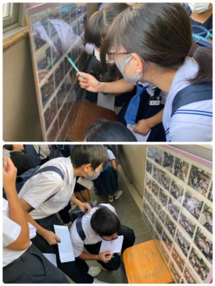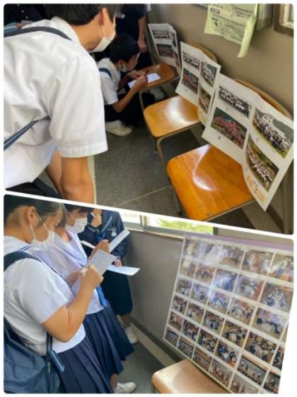 中間テスト後、3年生は修学旅行の写真を確認しています。