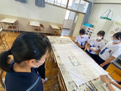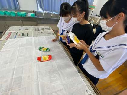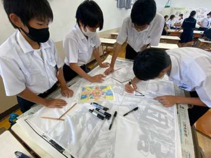 1年生も体育大会に向けて、学級旗の作成がはじまりました。