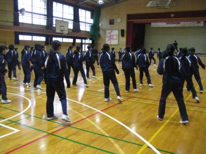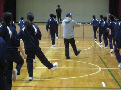 1月15日(木)、心斎橋のダンススクール「スタジオAX」によるダンス出前授業の3日目、2時間目に3年1組、3時間目に1年5組、4時間目に1年1・2組、5時間目に2年3・4組、6時間目に2年1・2組が指導を受けました。