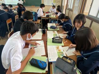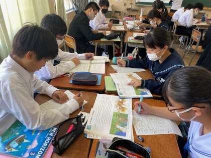 3年生の英語の授業では、グループ学習を行っています。