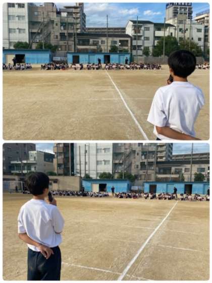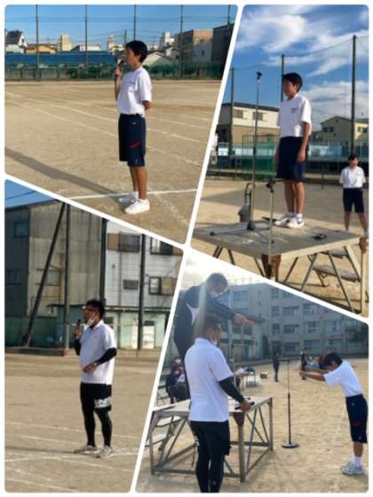 生徒体育委員代表が「本番はもっと真剣になると思いますが、精一杯がんばりましょう」とみんなに声掛けを行いました。