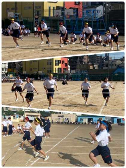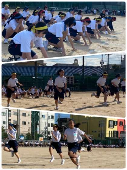 直線50mを全力疾走で競走します。クラウチングスタートで勢いよく飛び出していきました!
