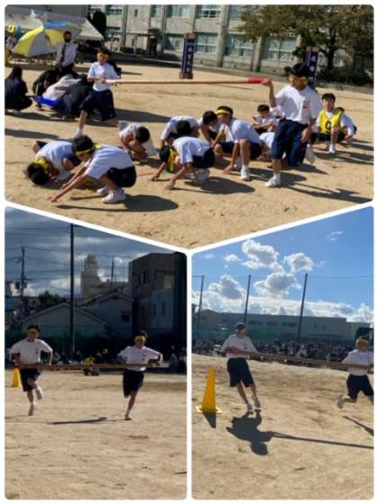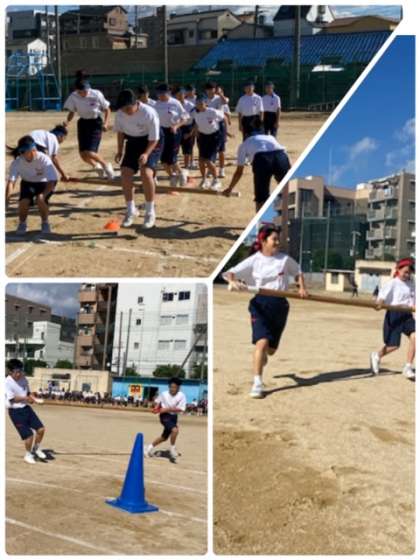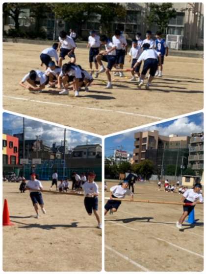 1年生の学年種目は、台風の目です。みんなで団結して、1位めざして走れー!