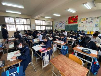 3年生の国語の授業では、6月実施予定であった「チャレンジテスト」を模擬テストとして行っています。