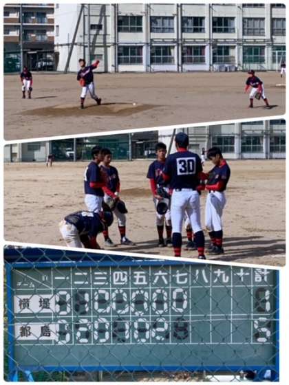本日、野球部は新豊崎中で第2支部大会トーネメント2回戦を行っています。対戦相手は、強豪 都島中です。横中野球部は、1年生チームのフレッシュメンバーで挑んでいます。