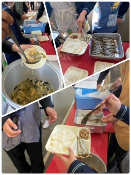 配膳例から、ししゃもは1人3尾ずつです。五目汁もきんぴらごぼうもたっぷりと盛り付けられます。今日も美味しくいただきました!