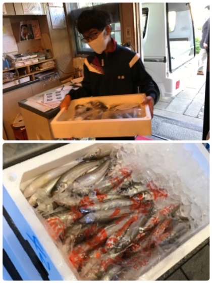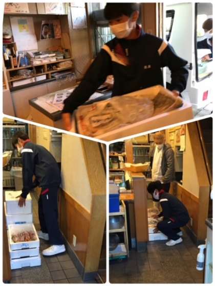 お寿司屋さんで体験する生徒は、中央市場へ魚の買い出しに行ってきました。