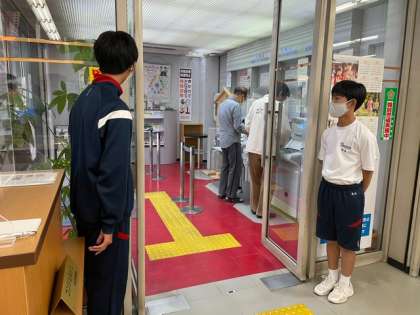 信用金庫で職場体験を行っています。お金の数えたり、接客の様子を見学したりしています。明日は、工場見学があるそうです。
