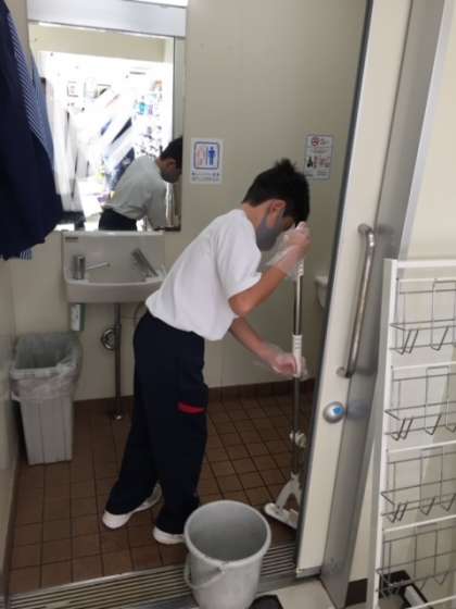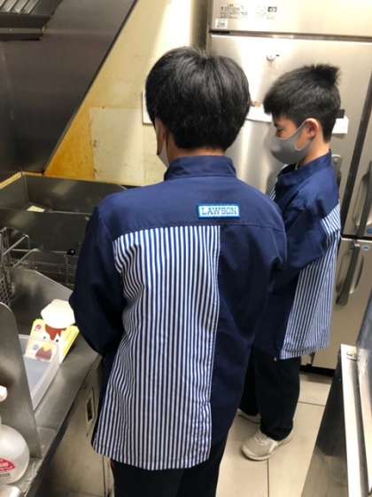 トイレ掃除や商品の品出し、から揚げなどの体験をしています。この体験は、お客さんとして訪れる時にも役立ちそうです。
