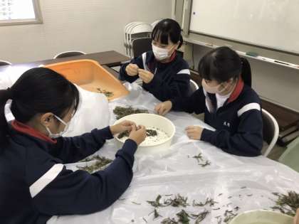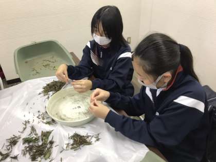 鶴見緑地パークセンターで職場体験を行っています。緑地内の植物の種取り作業のお手伝いをしました。施設に戻って選別を行っています。