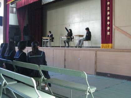 劇が終わった後、茨田高校の藤井先生からピア・メディエーションについて解説をしていただきました。演技をした高校生へのインタビュー形式でわかりやすく説明していただき、ピア・メディエーションの理解を深めることができました。