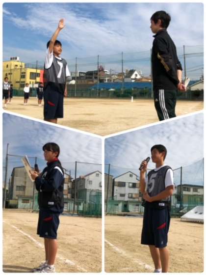 体育委員が中心となり、大会を運営しています。選手宣誓や競技説明、ラジオ体操をして準備します。