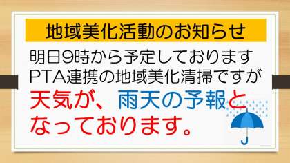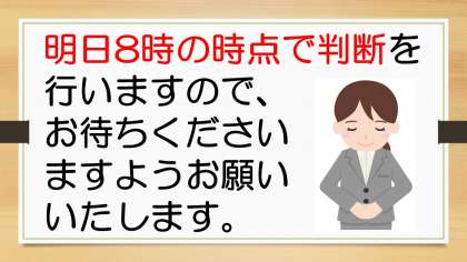 明日の天気が危ぶまれますので、朝8時に改めてお知らせいたします。