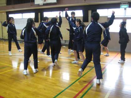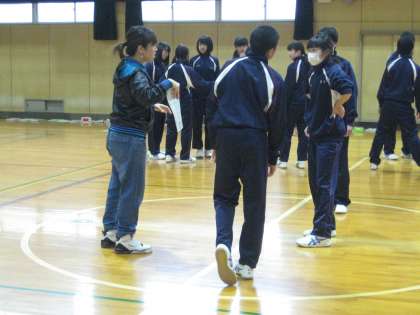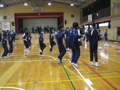 2年1・2組と1年5組、1年3・4組はダンス6時間目に入り、AKANEさん、YUKIさんからアドバイスをもらいながら、作品作りに取り組んでいました。