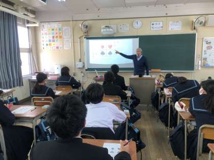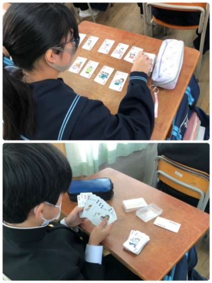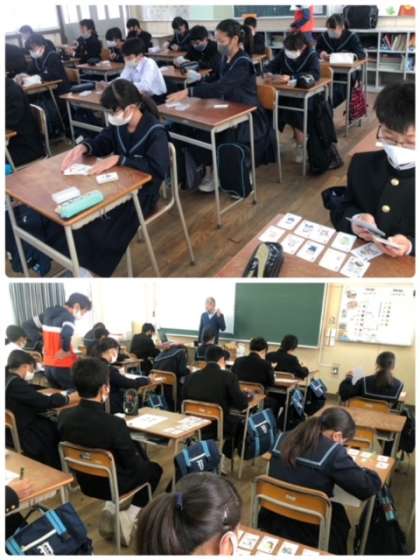 1年生は、ヒューマンキャンパス高等学校から先生をお招きして、キャリア教育を行いました。自分の性格から職業選択につなげるSPトランプを各学級で取り組みました。