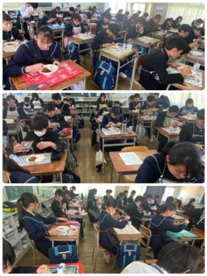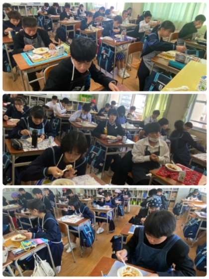 いつもの給食よりだいぶ物足りないようですが、「意外と美味しい!」と食べています。
